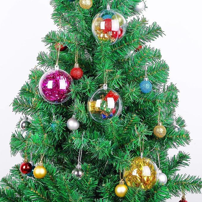 【取り付け簡単】ユニークなデザインで、透明なプラスチック製のボールオーナメントはとても使いやすいです。ボールが真ん中で開閉する仕組みになっており、吊り下げ用の穴がある、中に好きなアイテムを入れることができます。