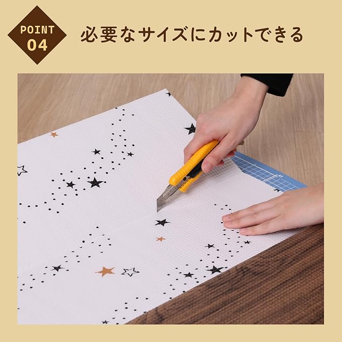 【商品仕様】:サイズ/約幅200 高さ60 厚さ0.55cm、柄/木目調・星柄のリバーシブル、内容/1枚、材質/発泡ポリエチレン・PEフィルム