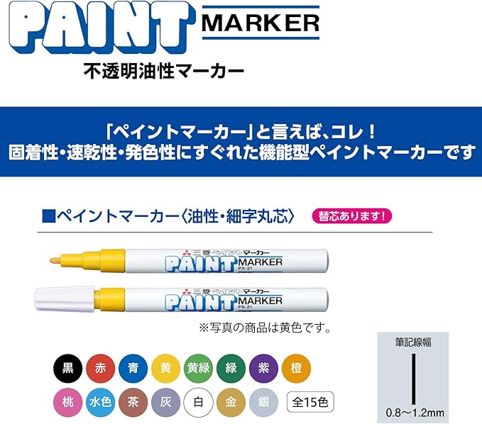 金属・ガラス・プラスチックなどへの筆記に最適。太さも選べる3タイプ。