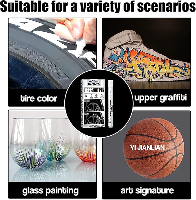 タイヤペイントマーカーペン、アートマーカー、4本タイヤマーカー 白 マーカーペン、ホワイトレタータイヤ ペン、ホワイトマーカーペン、ホワイト タイヤ マーカー 車のタイヤ、ゴム、金属、水性インク、車の装飾用 | etshop