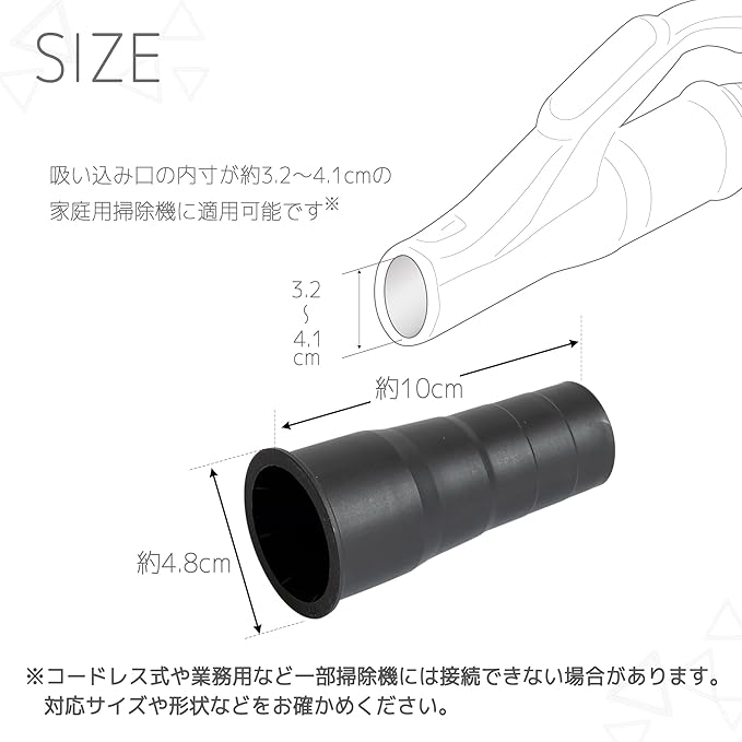 家庭用掃除機吸い込み口の内寸サイズが約32~41mmサイズに適用可能です。