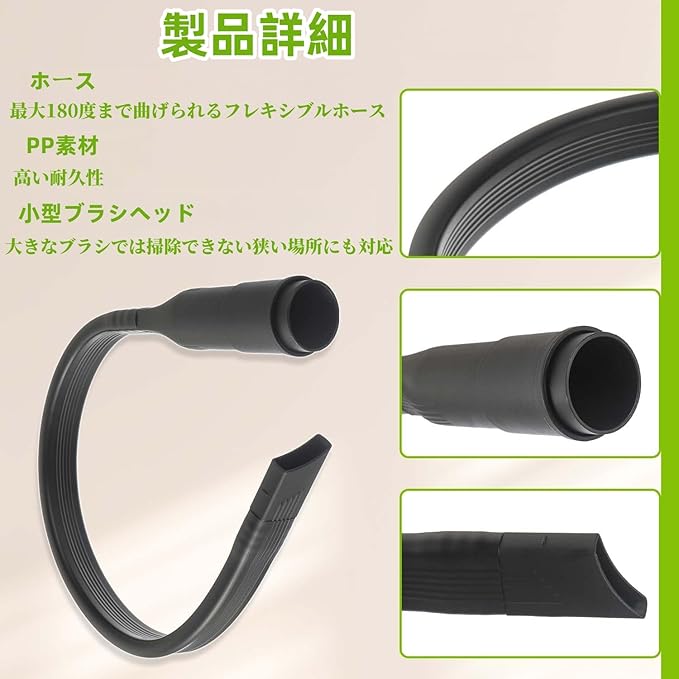 【強力吸引&耐久性】平口形状により吸引圧を集中させ、細かいチリや粒子もらさずキャッチ。耐久性に優れ、繰り返し使用しても変形や劣化がほとんどありません。