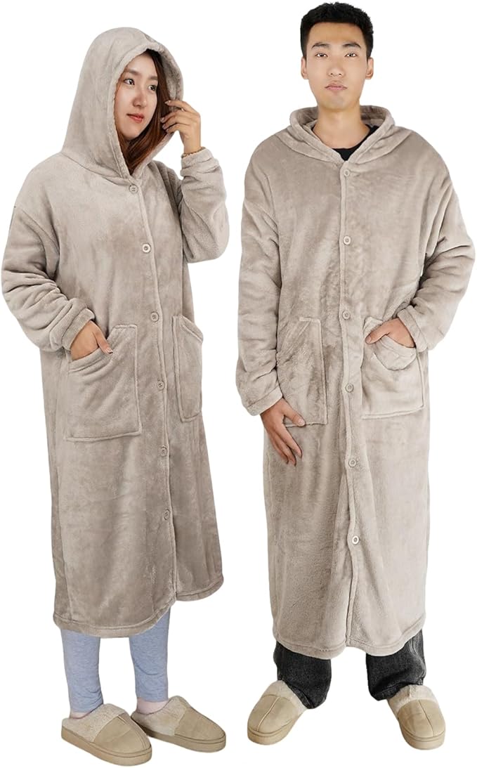 着る毛布 メンズ 着る毛布 レディース ルームウェア 部屋着 暖かい 着るブランケット ガウン 大きいサイズ 冬用 ロング丈 防寒 フード付き ポケット付 男女兼用 パジャマ フランネル 静電気防止 洗える 吸湿発熱 | etshop