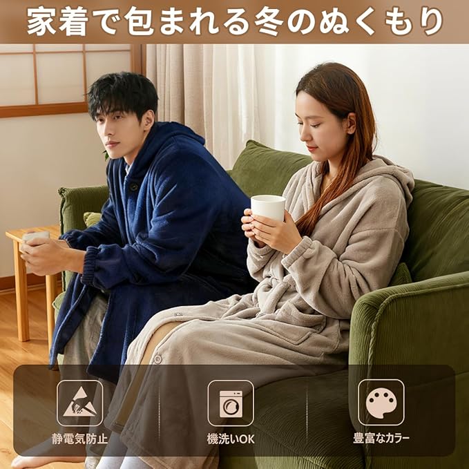【すべすべ肌で静電気対策】着る毛布 メンズは柔らかく肌に優しく、触り心地はシルクのようにスムーズで快適。高密度ふわふわ着る毛布 レディース。着心地ストレスフリー、防寒性抜群で静電気軽減