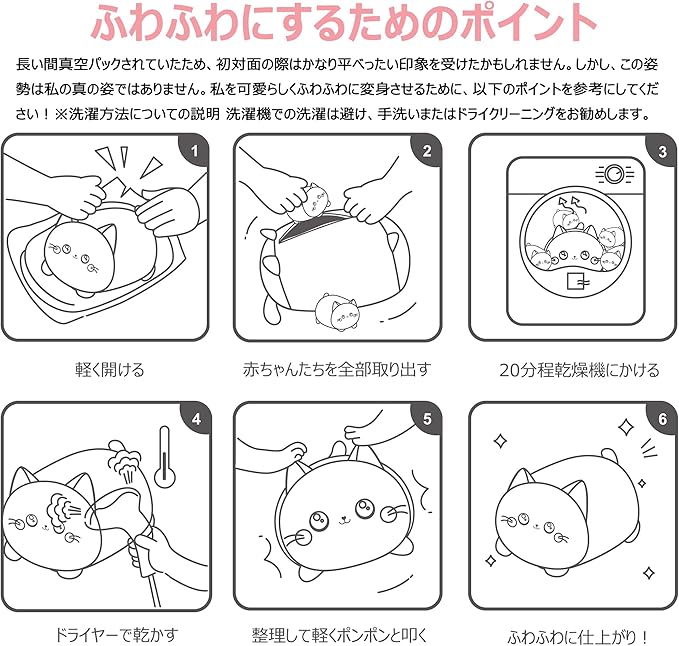 5匹入りのマジカルな大きい猫ぬいぐるみセット: この大きな猫ぬいぐるみセットは、魔法のママ猫とそのお腹に隠れた4匹の子猫ぬいぐるみが特徴です。ジッパーを開けると4匹の猫赤ちゃんが顔を出し、驚きと楽しさを提供します。男の子も女の子も、抱き枕やぬいぐるみとして楽しめるデザインです。