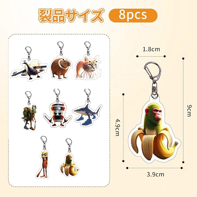 【8種類の精巧なキャラクターデザイン】イタリアンBrainrotキャラクターをモチーフにしたキーホルダー8個セット。それぞれがユニークな動きのポーズと誇張された表情で精巧に再現されており、ネットミームの經典的なイメージを完璧に再現。コレクションと展示に高い価値があります。