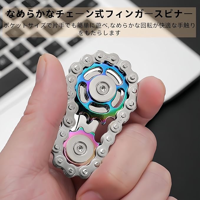 【滑らかなチェーン式ハンドスピナー】ポケットサイズで片手でも楽しめる、なめらかな回転が心地よいデザイン。