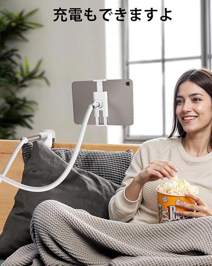85cmの調整可能なスタンドアーム:当社のタブレットスタンドは、長さ 85cm まで自在に曲げて調整できる柔軟なホースを採用しています。あなたは好きな高さと形に自由に曲げることができます。高品質な直径 9 ミリの金属材質が内蔵されており、12.9 インチのタブレットでも簡単に支えることができ、揺れたり、垂れ下がったりすることはありません。
