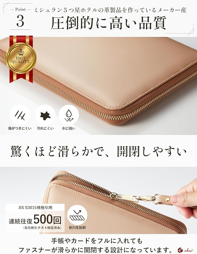 お薬手帳 ケース 【 ストラップ付き 】 ラウンドファスナー式なので、大事な物が落ちにくい。ストラップも付いているので、落としにくく、防犯防止にもなります。ストラップを手首にかけて、両手がフリーになるので、持ち運びもラクラクです。