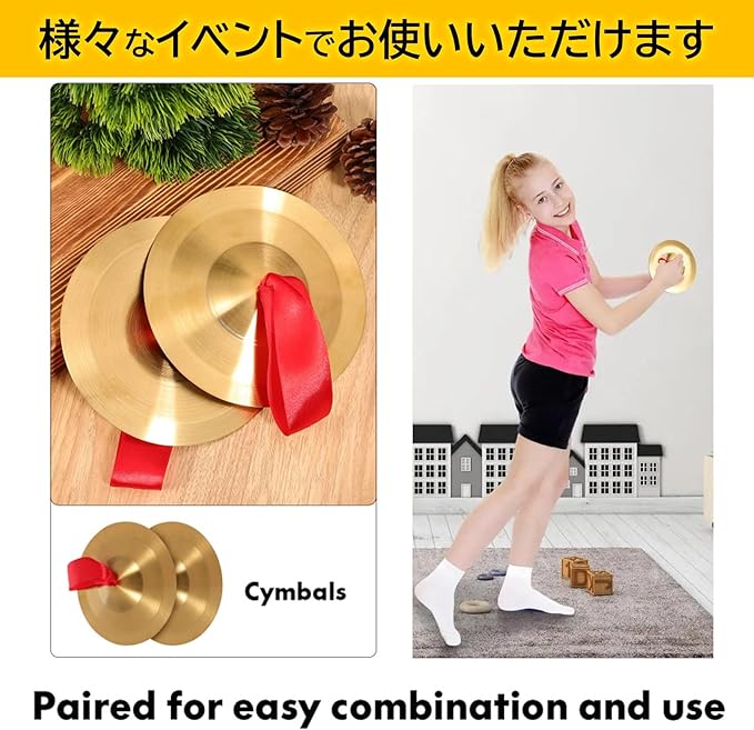 お子様の知育楽器として、演奏して音を出す喜びや集中力、思考力、創造性などを育みます。また、お遊戯会や文化祭、演奏会など多様なシーンでご活用いただけます。2枚組1ペアでお届け致します。