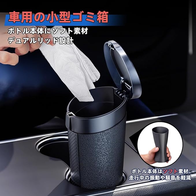 【柔軟なボディ ・走行中の騒音なし・おしゃれ な見た目】この車載ゴミ箱は高品質なABS素材で作られており、カップホルダーに触れても揺れによる不快な音が出ません。静かで快適なドライブを実現します。また、この車内ゴミ箱はユニークなカーマークデザインが施されており、ファッション性の高いカーアクセサリーとしても魅力的です。