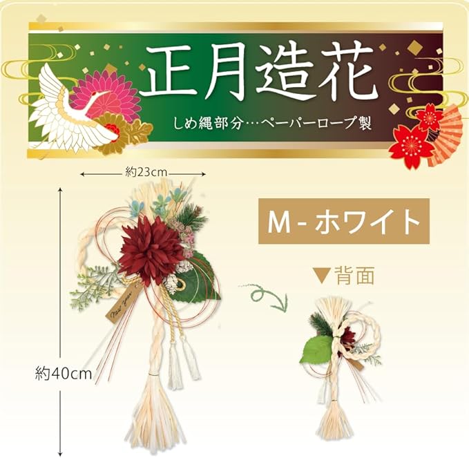 ポピー名古屋 造花 しめ縄 正月 正月飾り ホワイト 玄関 新春 SN-13