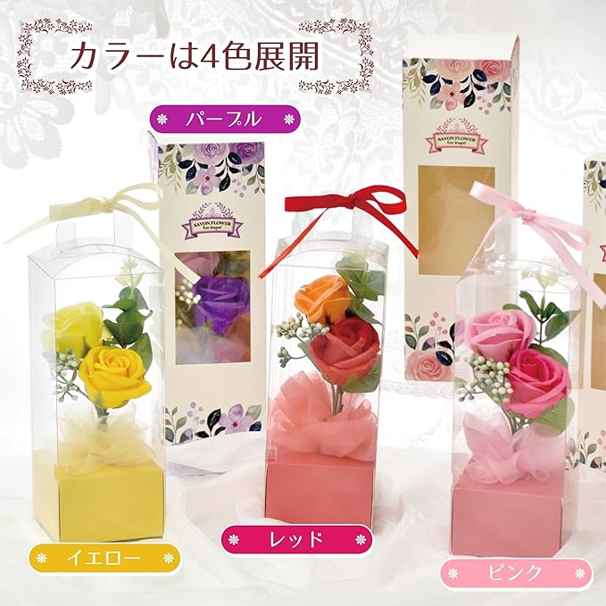 カラーバリエーション豊富でお値段もお手頃なシャボンフラワーです。
