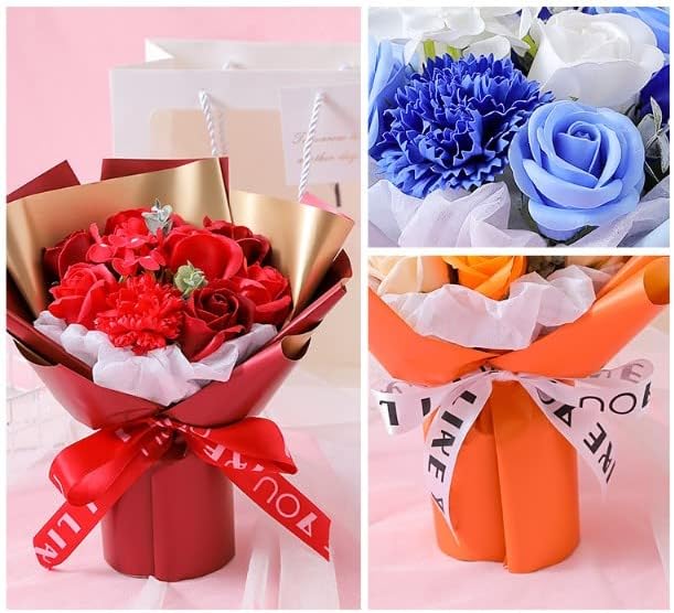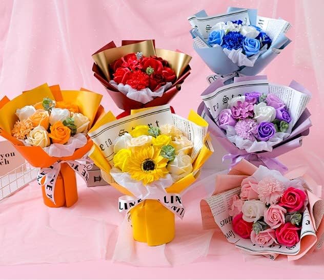 SCAMPER ソープフラワー 誕生日 プレゼント 女性 人気 花束 造花 ギフト ドライフラワー インテリア 結婚記念日 発表会 敬老の日 母の日 退職 祖母 彼女 送別会 専用のギフト ブーケ プレゼント 記念日 贈り物 (青)