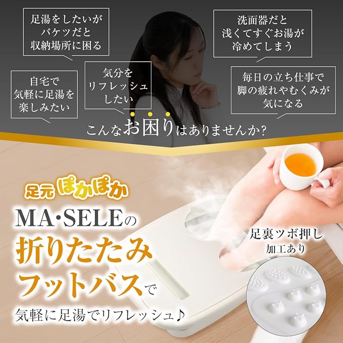 【現役接骨院院長監修】MA・SELE 折りたたみ フットバス 蓋付き 足湯 コンパクト収納 バケツ 軽量 リラックスボール2個 ボール用収納袋 保温効果 足つぼ 突起加工 使用方法解説書付 | etshop