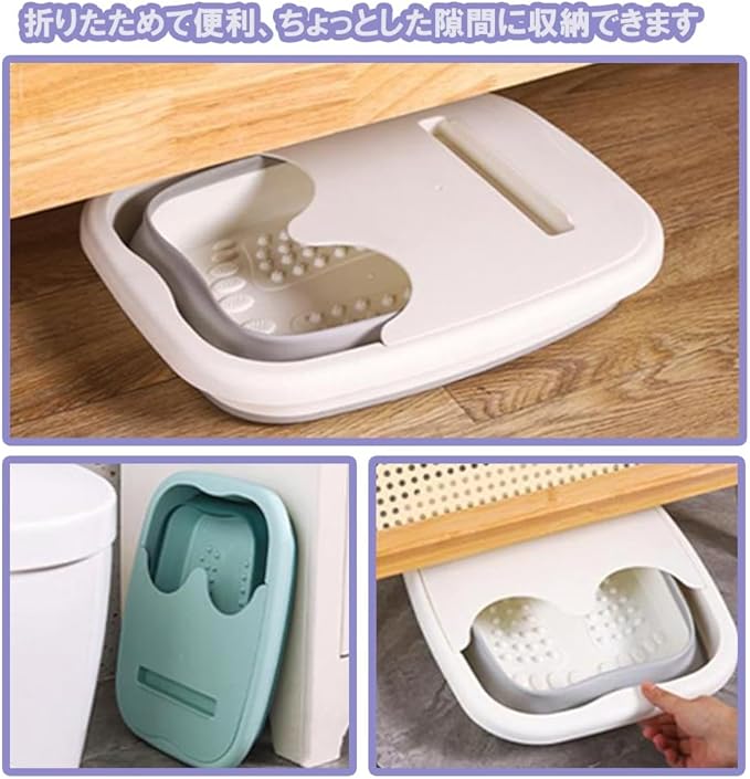 この折りたたみ式フットバスは、手軽に自宅でリラックスタイムを楽しむことができます。