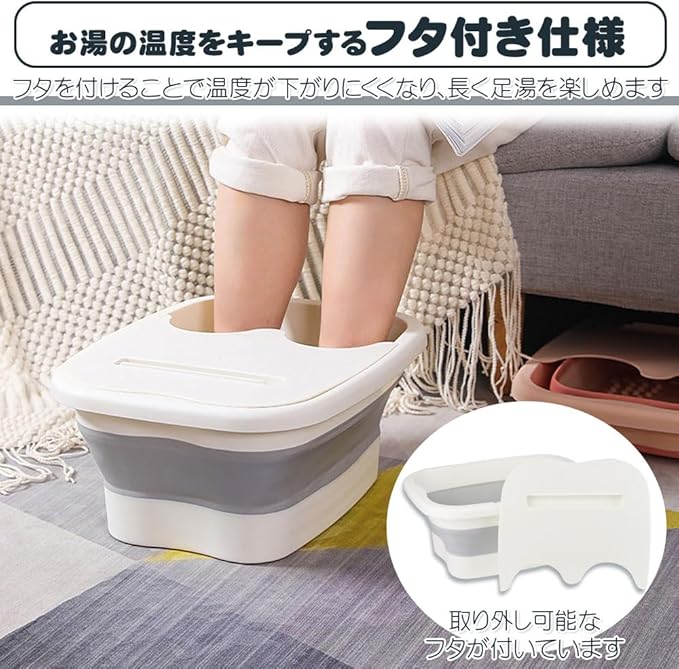 デスクワーク中につま先が冷える/わざわざ温泉街まで行くのは面倒…といった方にお勧めのアイテムです。お湯をバケツの中に注ぐだけで準備できるため、自宅でも手軽に足湯を楽しめます。