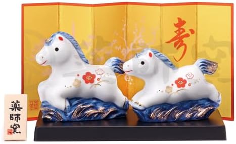 古来より午(馬)は生後すぐに走り出すことから立身出世や幸運を招く動物として人々から尊ばれてきました。どんな道も恐れず駆け抜ける姿は苦難を乗り越える力強さを感じさせ発展と向上の一年となるようにとの願いが込められています。【注意】商品は全て手作りのため、色合いや質感が実際の商品とは多少異なる場合がございます。品質改善のために予告なく商品の一部を変更する場合がございます。【サイズ】(親)高さ6㎝ 横巾7㎝ 奥行3㎝ (子)高さ5㎝ 横巾7㎝ 奥行2.5㎝【素材】磁器【原作国】中国