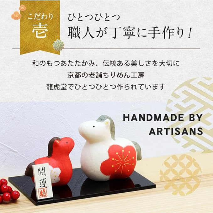 大阪長生堂 干支飾り 干支置物 午 馬 ウマ うま 十二支飾り 正月飾り オリジナル木札無料特典付(別送) ちぎり和紙 紅白親子福丸午