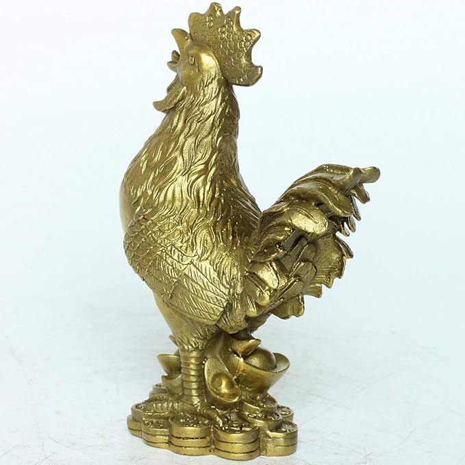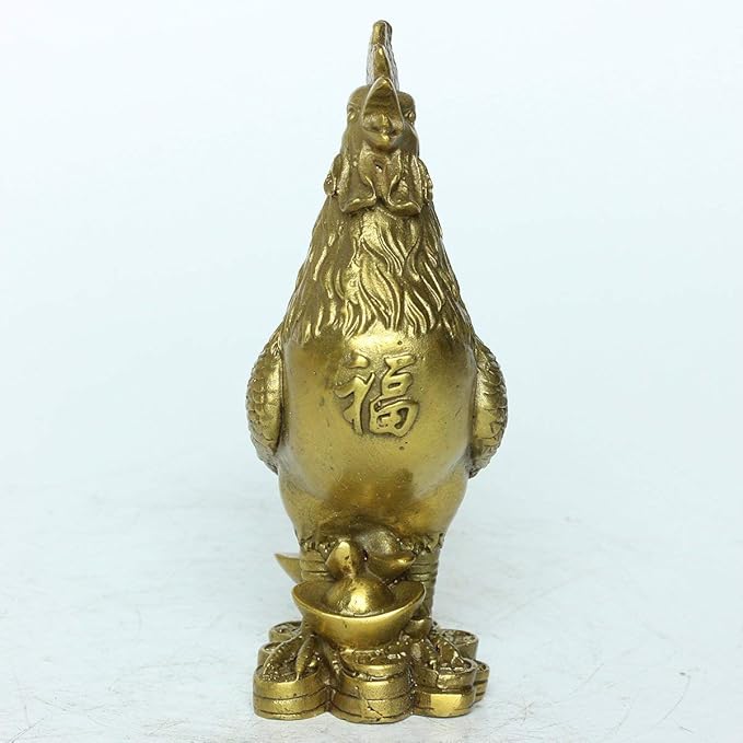 この銅製の「福の鶏 酉 とり」フィギュアは、約5.5cm x 3.5cm x 9.5cmのサイズで、約150gの重さです。ゴールドの表面はグロスフィニッシュで、アールデコのスタイルと宗教的なテーマを持っています。このフィギュアは風水のマスコットとして知られ、人に幸運をもたらし、金運や財運を引き寄せる力があるとされています。単体でインテリアにもお薦めです。