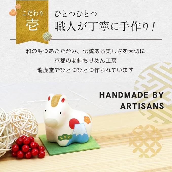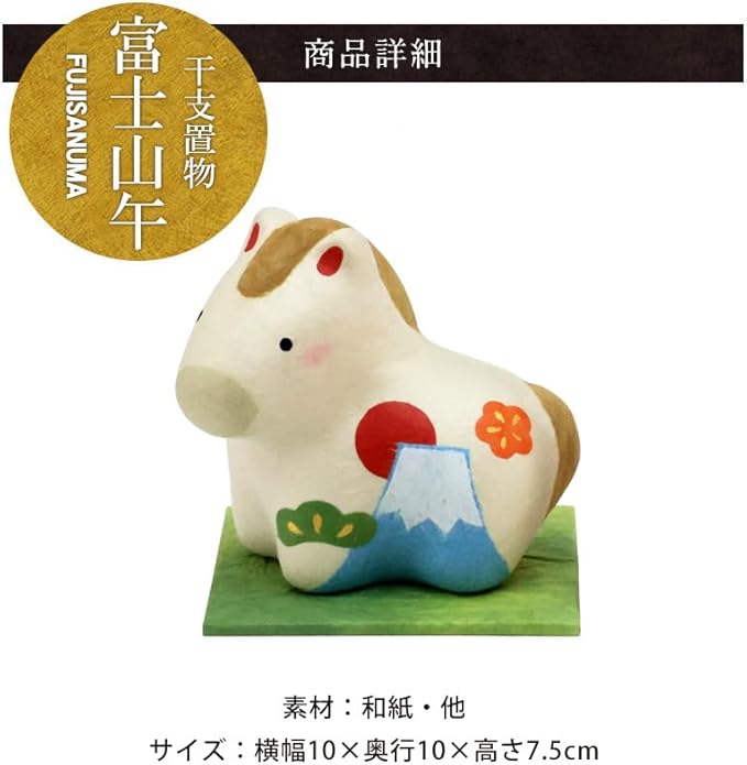 大阪長生堂 干支飾り 干支置物 午 馬 ウマ うま 十二支飾り 正月飾り オリジナル木札無料特典付(別送) ちぎり和紙 富士山午