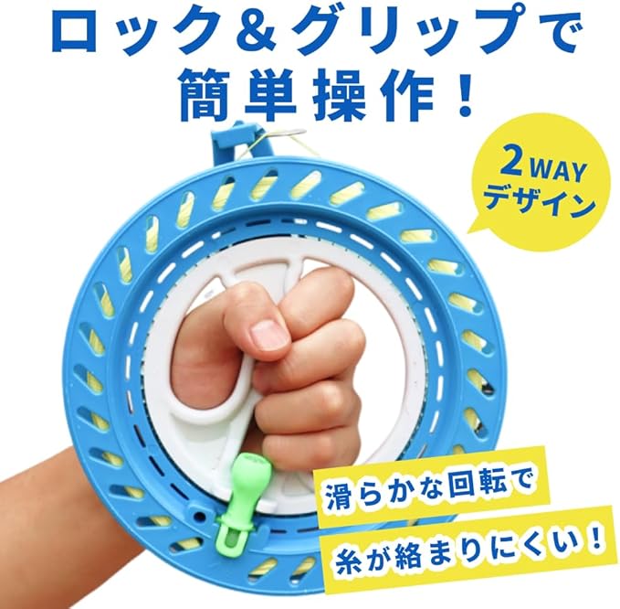 【便利なロック&グリップ機能】使わないときはロック、使用時はグリップとして活用できる2WAYデザイン。滑らかな回転と操作性の良さを実現し、初心者でも簡単に凧揚げを楽しめます。