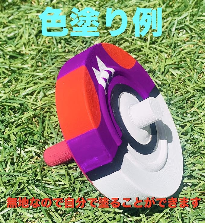 本体は無塗装ですので絵の具やサインペンで色をぬってオリジナルの独楽に仕上げるのも楽しいです。作例はアクリル絵の具で塗装しています。