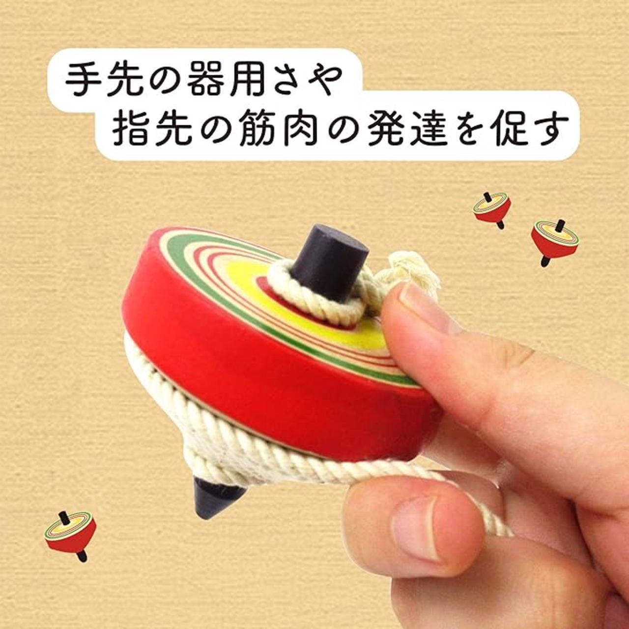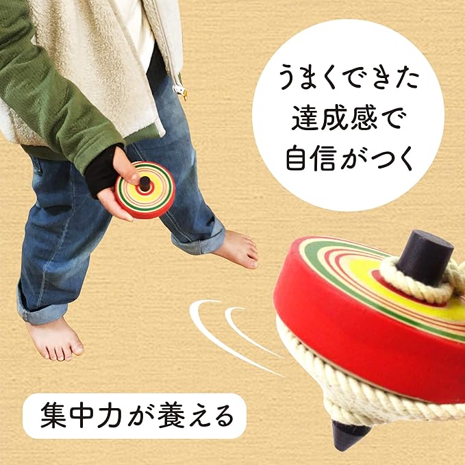 【学べて遊べる知育玩具】コマで遊ぶと手先の器用さや指先の筋肉の発達を促せます。またステップを踏んで自由自在にコマを操りなげごまで遊ぶことができれば集中力や達成感を味わえる、まさに遊びながら学べる木のおもちゃです。