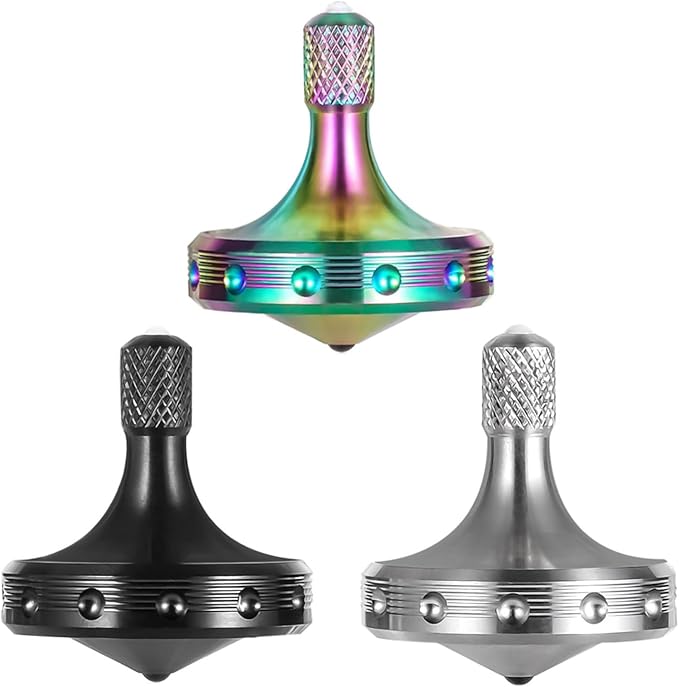 3PCS 精密金属こま、長時間スムーズに回転、最高の回転時間は 8 分以上、完璧なバランス、よくできた大人用 EDC デスクトップ ジャイロおもちゃ | ユニークなギフト (3PCS ブラック+シルバー+マルチカラー) | etshop