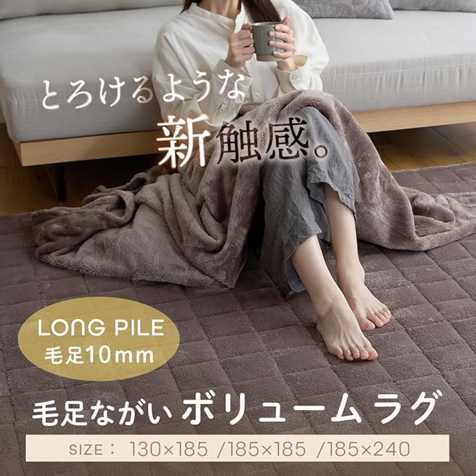 表:毛羽部分:ポリエステル100%(フランネル長毛マイクロ330g/m2) グランド部分:ポリエステル100% 中綿:ポリエステル100%吸湿発熱綿 洗えるウレタン20D 10mm 裏:不織布滑り止め付き