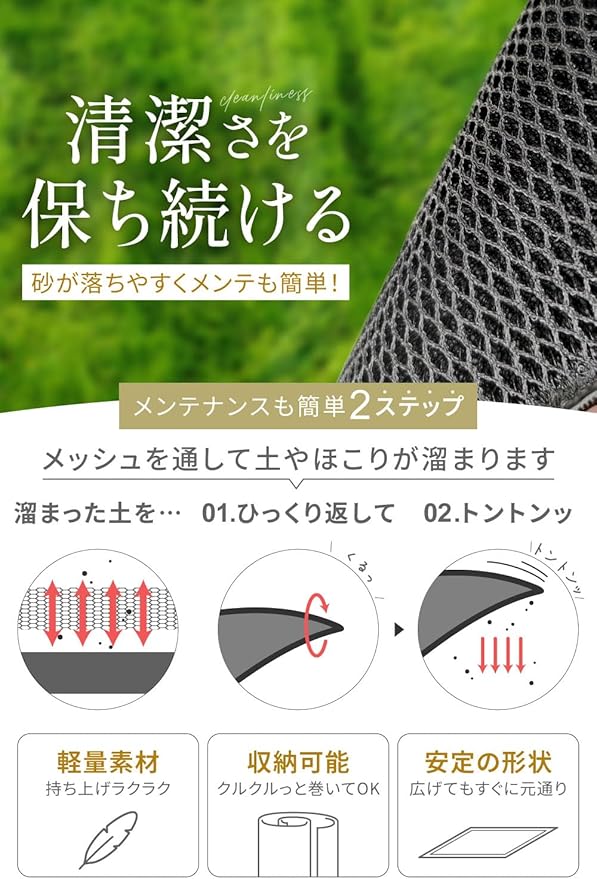 ✅【水洗いOK・掃除も簡単】 汚れが目立ちやすい屋外マットも、サッと水洗いするだけで簡単にきれいになります。砂利や泥が詰まっても、ひっくり返して叩くだけ。複雑な手入れは一切不要なので、日々の掃除の手間を最小限に抑えられる玄関マットです。