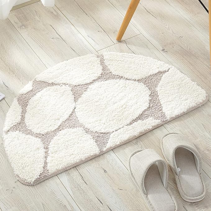 玄関マット 屋内 室内 洗える 半円形 北欧 42x70cm ホワイト カーペット ラグマットお風呂マット バスマット 浴室マット 泥落とし 吸水 速乾 ふわふわ 滑り止め 抗菌消臭 かわいい おしゃれ