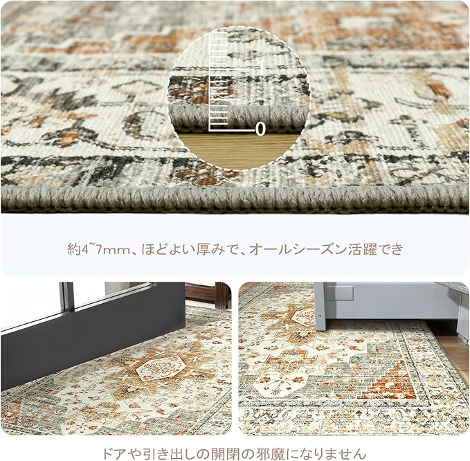 【幅広く活躍】さらっと滑らかな肌触りとほどよい厚みで、春から冬にかけてオールシーズンにお使いできます。床を 保護だけでなく、インテリアとしてもぴったりです。玄関、屋外、バスルーム、キッチン、テーブル、椅子の下、ペット用、ベッドサイド、ベランダなど幅広く活躍します。超短毛の表面なので、ローリングチェアの下でもスムーズにご使用いただけます。