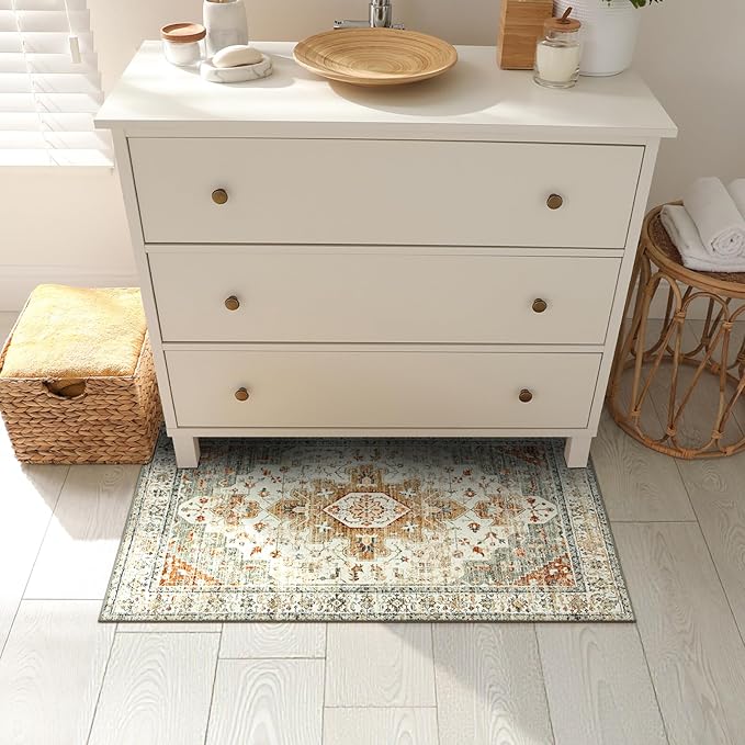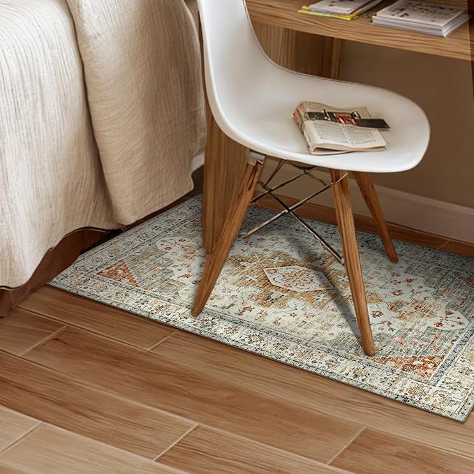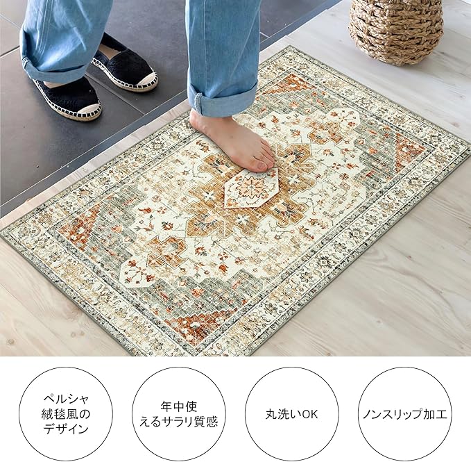 HAOCOO 玄関マット 室内 ペルシャ風 50х80cm 小さい ラグ おしゃれ 洗える 長方形 耐磨耗性 滑り止め 防音 ラグマット 屋外 泥落とし シェニール オールシーズン適用 抗菌防臭 軽量 メダリオン柄 カーキ | etshop