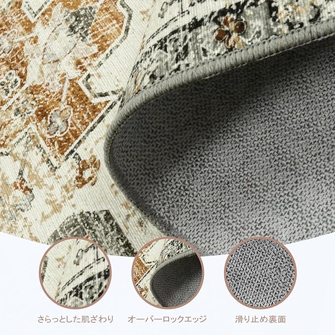 【ペルシャ風デザイン・エレガントな装飾】左右対称のメダリオン・コーナーとアラベスク模様が特徴のペルシャ伝統デザイン。中央のフラワーモチーフがボーダーで縁取られ、芸術的な美しさを演出します。滑らかな肌触りと適度な厚みで、オールシーズン快適に使用可能。おしゃれな装飾性だけでなく、耐久性にも優れています