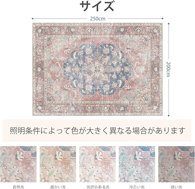 【滑り止めで耐久性がある】高品質の織り方は耐摩耗性、耐圧縮性があり、変形しにくいため、ラグ ペルシャ風の耐久性が確保されます。また、底部の滑り止めデザインにより、ラグ 洗えるは所定の位置に留まり、安定して安全に床を保護します。これは、子供、高齢者、ペットがよくいる屋内エリアに適しています(ペルシャ風 ラグの底を乾燥させておいてください)。
