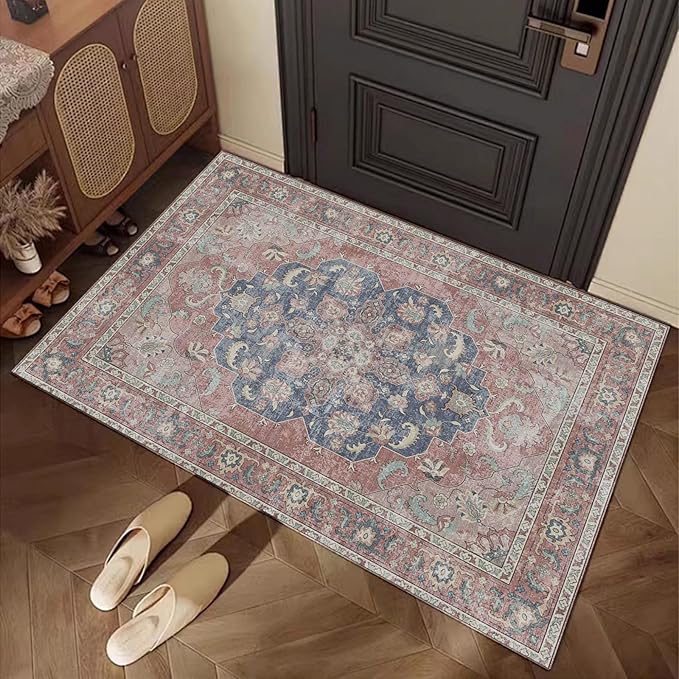 【ソフトな模倣カシミヤ】サイズ: 約80x120cm。カラー: ダークピンク。原産国: 中国。高品質のポリエステル繊維で作られたカーペットは、雲のように柔らかく繊細な感触を持ち、比類のない足元の感覚を提供します。ショートパイル玄関マット 室内の厚さはわずか0.5cmで、毛羽立ちには適していません。ペルシャ絨毯は入口や家具の下に簡単に置くことができます、ドアに引っかかったり他の人につまずいたりすることはありません。