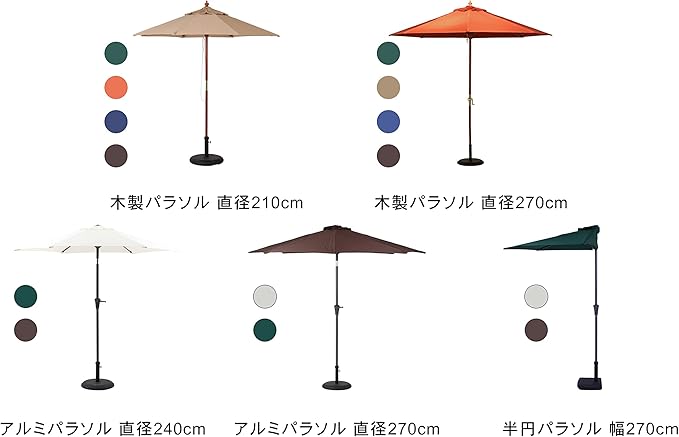 パラソルの大きさや使用する場所に合わせて重量を選べます。