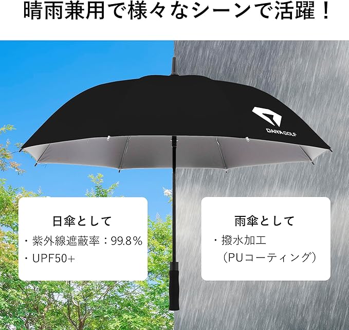 晴雨兼用なので雨の日のゴルフにも使えます。