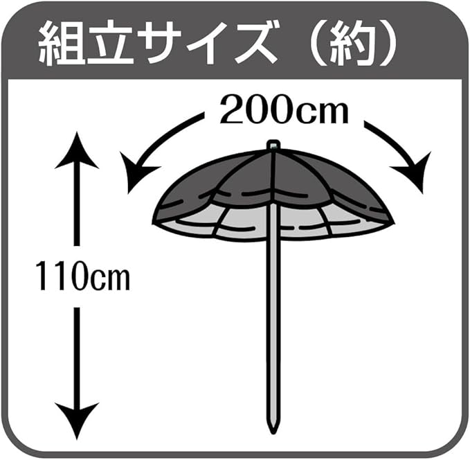 組立サイズ:(約)径2,000 高さ2,100mm、親骨の長さ:(約)97cm