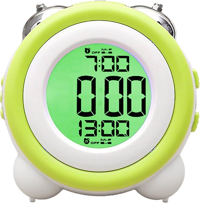 目覚まし時計 大音量 デジタル ベル ダブルアラーム スヌーズ機能 LED バックライト 2つ LCD ディスプレー 電池式 卓上 置き時計 デュアルアラーム/チクチクしない/乾電池使用 ホワイト (グリーン) | etshop