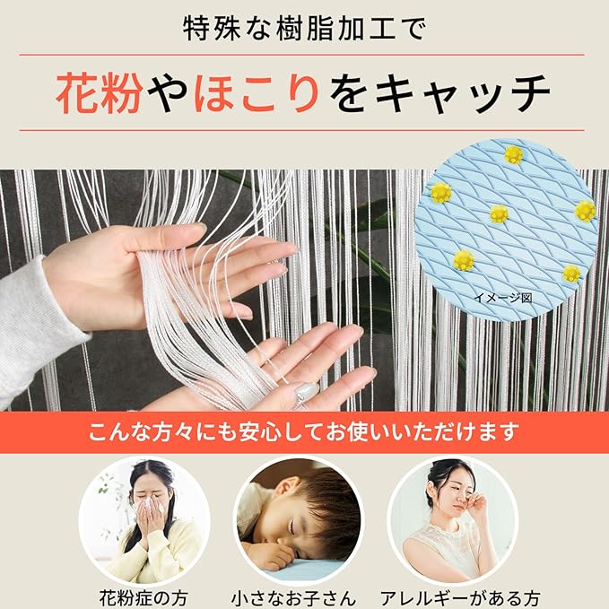 ※目隠しを目的した製品ではござません。間仕切りの透け感の調整は幅を寄せてご使用すると密度が増します。