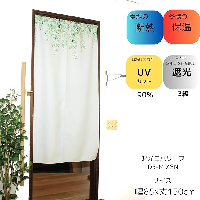 【製品サイズ】遮光性のれん・幅85cm x丈150㎝*中央部分は切れた状態になります。