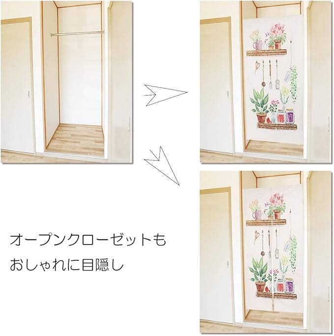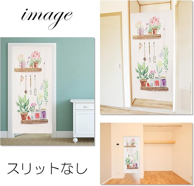 のれん おしゃれ ロング丈 180cm 北欧 プランター ボタニカル ナチュラル 観葉植物 グリーン ロング 可愛い 突っ張り棒 暖簾 間仕切り 押し入れ クローゼット 脱衣所 棚 玄関 インテリア 布 目隠し カーテン (デザイン3(スリットなし))