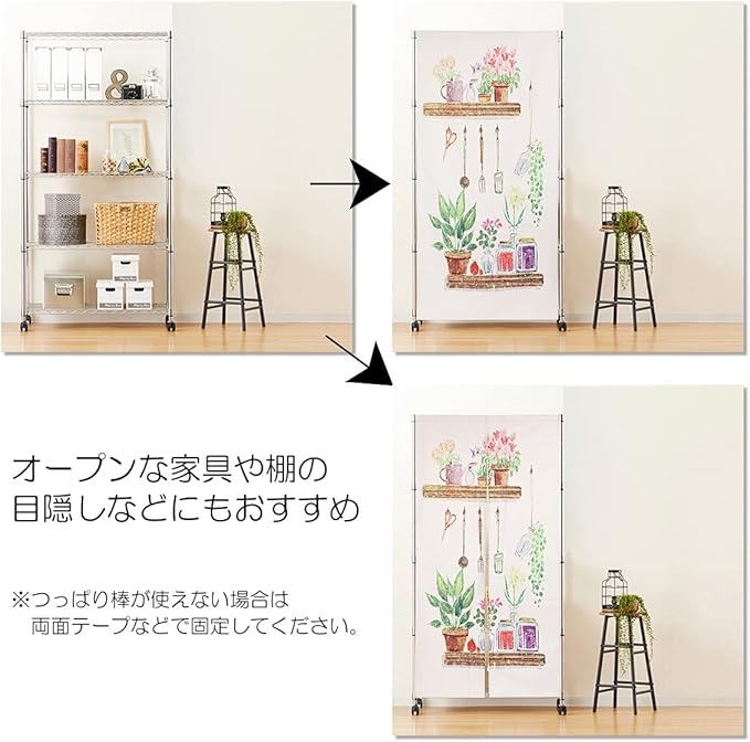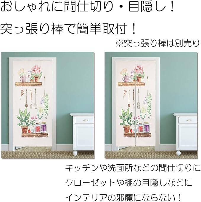 ✅取付は、のれん上部に突っ張り棒などを通せる仕様となっております。※突っ張り棒は商品に含まれておりません。ご自身でご用意いただけますようお願いいたします。