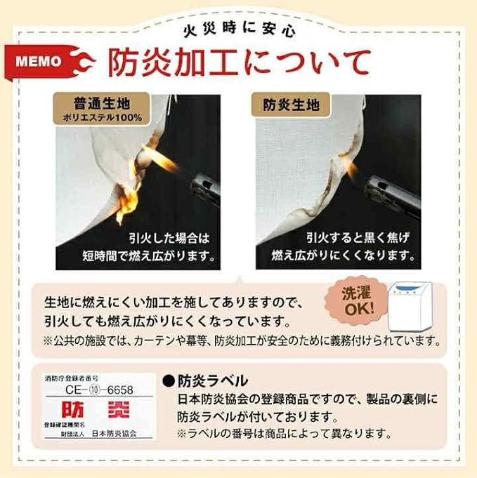 【注意点】※商品の裏側上部に防炎ラベルが縫い付けてあります。切り取らないでお使いください。 ※のれん棒、突っ張りポール等は付属しておりません。 ※カラーに関してはモニターの発色により多少異なる場合があります。