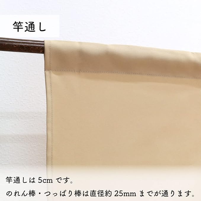 【仕様】真ん中に4か所割れ目がある、5つ割れののれんです。直径約2.8cmまでのポール(棒)を通すことができます。(※つっぱり棒をご使用の場合は、両端のキャップの太さも考慮してください。キャップが取り外せるものもございます。) 透けにくく、目隠しに最適です。※遮光ではありません!(見られたくない部分をしっかり隠せます。)
