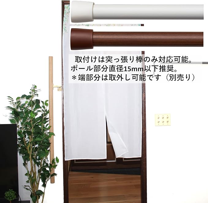 【取付方法】竿通し部分の直径は幅約4.0cmです。 両端の直径22㎜以下の突っ張り棒をご使用ください(別売り)