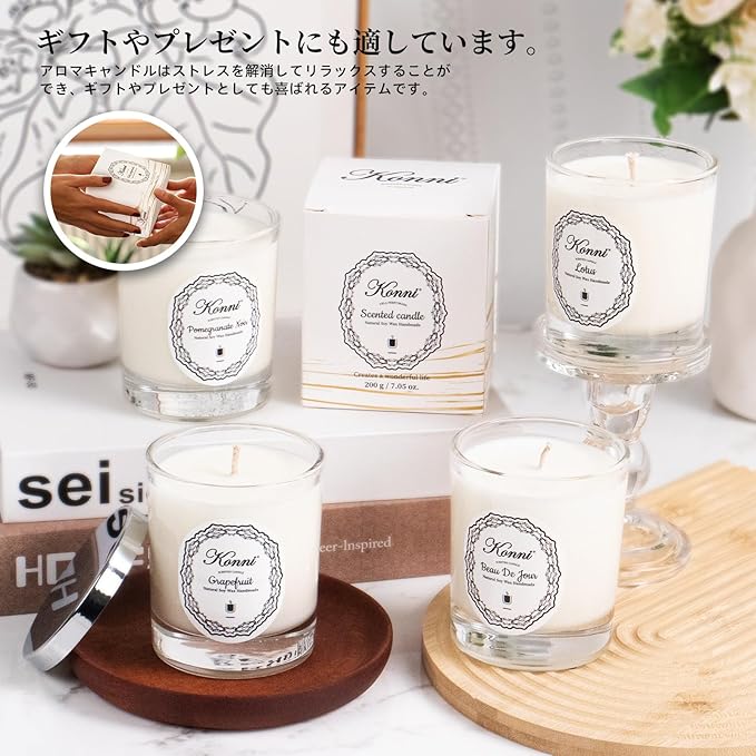 プレゼントにも最適:アロマキャンドルはストレスを解消してリラックスすることができ、ギフトやプレゼントとしても喜ばれるアイテムです。多くの場所での使用に適しており、リラックスタイムの使用はもちろん、入浴、ヨガ、オフィスなど、様々なシーンで快適な雰囲気を作り出す事が出来ます。また美しいデザインのブリキの容器は使用後にも小物ケースや小さな植木鉢などに最利用する事が可能です。