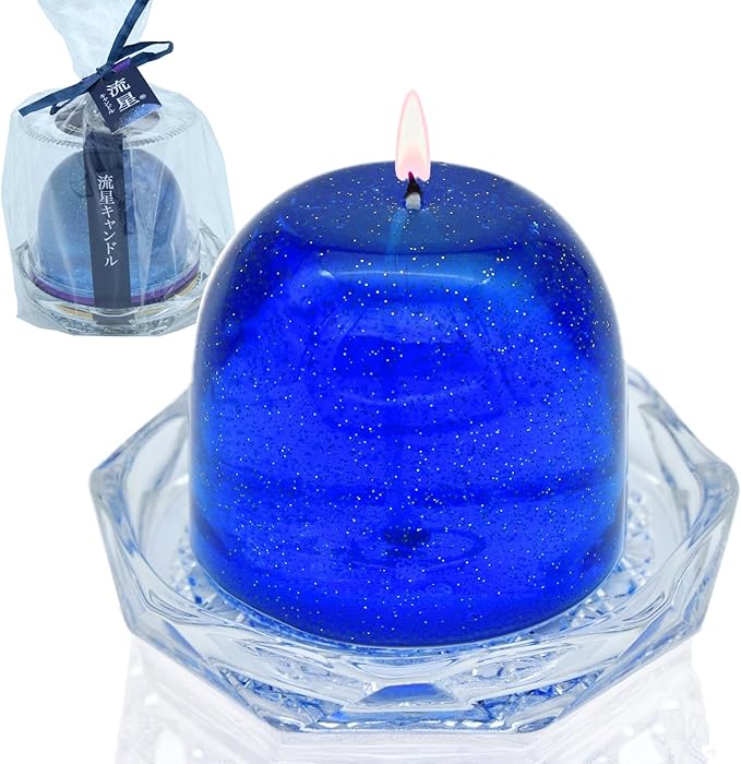 【アロマキャンドル ギフト】「一日5分、お部屋の灯りを消して星空の様な輝きに癒されませんか?」をコンセプトに制作された「流星キャンドル」。【ソーサー付】